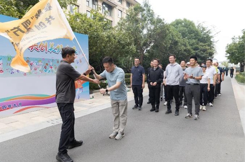 經(jīng)過三個多小時的同行,各隊陸續(xù)順利抵達終點,圓滿完成了13公里的徒步任務(wù)。奔赴終點處,各隊旗手分別向集團黨委書記、董事長萬永生遞交了象征著隊魂和榮譽的隊旗,萬董事長接過承載著大團結(jié)大聯(lián)合力量的旗幟,徒步階段圓滿結(jié)束。