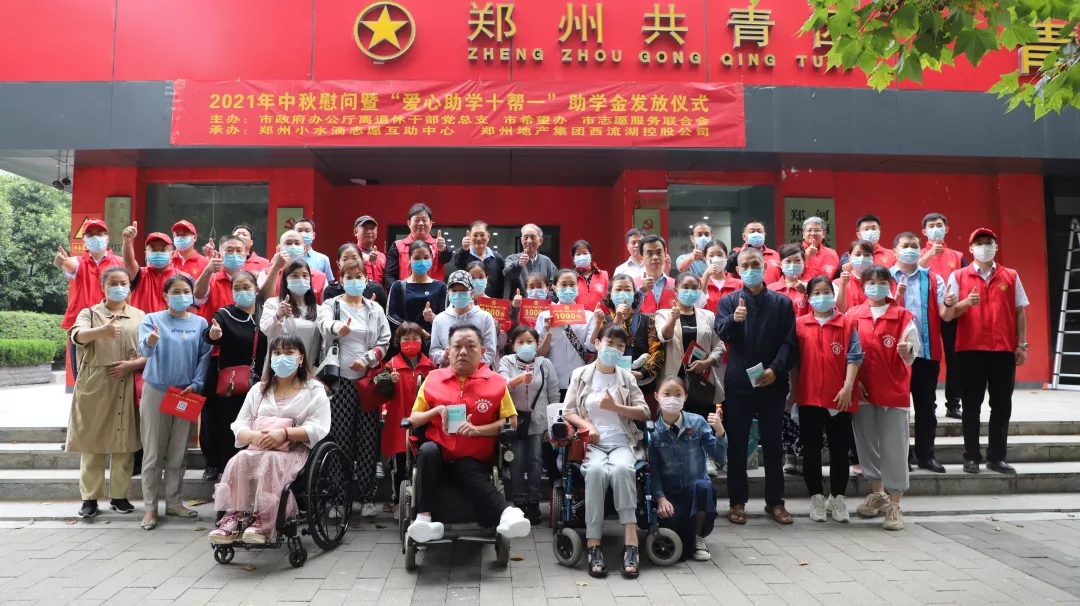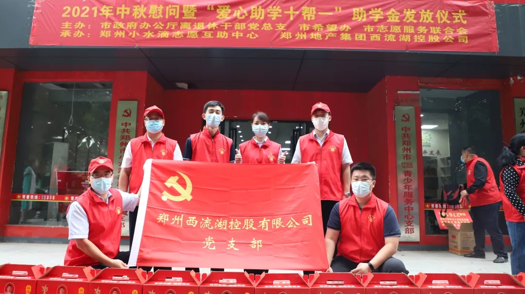 在中秋佳節(jié)來臨之際,由鄭州市政府辦公廳離退休干部黨總支、鄭州市希望工程辦公室、鄭州市志愿服務(wù)聯(lián)合會主辦,鄭州市小水滴志愿互助中心、鄭州地產(chǎn)集團(tuán)西流湖控股公司聯(lián)合承辦的2021年中秋慰問暨“愛心助學(xué)十幫一”助學(xué)金發(fā)放儀式于9月17日上午在鄭州共青團(tuán)青春家園舉行。