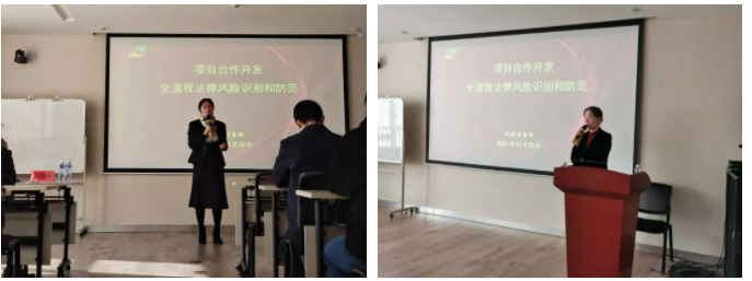 培訓由集團風控法務部部長邵淑毅主講,培訓課題為《項目合作開發(fā)全流程法律風險識別和防范》。邵部長結合豐富的房地產(chǎn)項目合作開發(fā)投資及法務管理風控經(jīng)驗,聚焦標的項目、目標公司、交易過程三個維度,詳細講解了標的項目權屬爭議、開發(fā)可行性、目標公司股權瑕疵、治理結構、項目鎖定、資金安全等共計24項重大風險。從全流程風險防范的角度,提出四個方面的應對措施:充分全面的盡職調查、合理的交易方案、嚴謹規(guī)范的合同文本、有效的履約管理。最后,邵部長提出集團法務及投資人員在工作中應務必盡心盡責、建立全流程把控理念,在項目風險防控中創(chuàng)造價值。