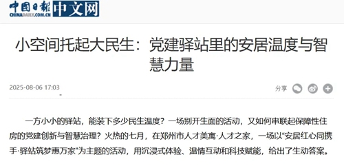 一方小小的驛站,能裝下多少民生溫度?一場(chǎng)別開生面的活動(dòng),又如何串聯(lián)起保障性住房的黨建創(chuàng)新與智慧治理?火熱的七月,在鄭州市人才美寓·人才之家,一場(chǎng)以“安居紅心同攜手·驛站筑夢(mèng)惠萬(wàn)家”為主題的活動(dòng),用沉浸式體驗(yàn)、溫情互動(dòng)和科技賦能,給出了生動(dòng)答案。