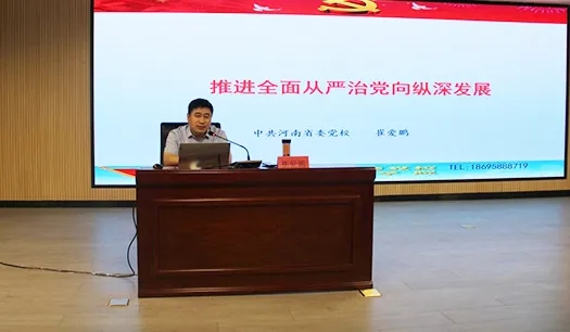 隨后,河南省委黨校崔愛鵬教授作了題為《推進(jìn)全面從嚴(yán)治黨向縱深發(fā)展》的專題培訓(xùn)。培訓(xùn)中,崔愛鵬教授從深刻理解新時(shí)代全面從嚴(yán)治黨向縱深發(fā)展的重大意義、全面把握新時(shí)代黨的建設(shè)的總要求、貫徹落實(shí)習(xí)近平總書記關(guān)于全面從嚴(yán)治黨的重要論述三個(gè)方面進(jìn)行了全面剖析和深入解讀,以史實(shí)為依據(jù),深入淺出,娓娓道來,使大家充分認(rèn)識(shí)到,“嚴(yán)”是立黨的初心品質(zhì),是治黨的鮮明特色,也是強(qiáng)黨的經(jīng)驗(yàn)優(yōu)勢(shì)。堅(jiān)持從嚴(yán)治黨,更是我們黨克服一切艱難險(xiǎn)阻、完成歷史使命的重要政治優(yōu)勢(shì),為集團(tuán)學(xué)習(xí)黨史、了解黨史,進(jìn)一步做好黨風(fēng)廉政建設(shè)和作風(fēng)建設(shè)工作提供了指南。