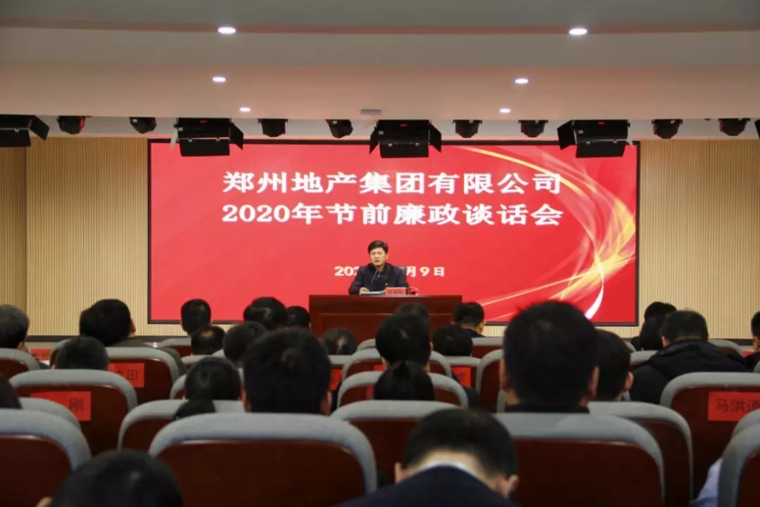 1月9日上午,鄭州地產(chǎn)在301會(huì)議室召開(kāi)2020年節(jié)前廉政談話會(huì),會(huì)議由黨委委員、監(jiān)事會(huì)主席李靜波主持,黨委書(shū)記、董事長(zhǎng)萬(wàn)永生做廉政談話,集團(tuán)全體人員及各子公司高管共計(jì)150余人參加。