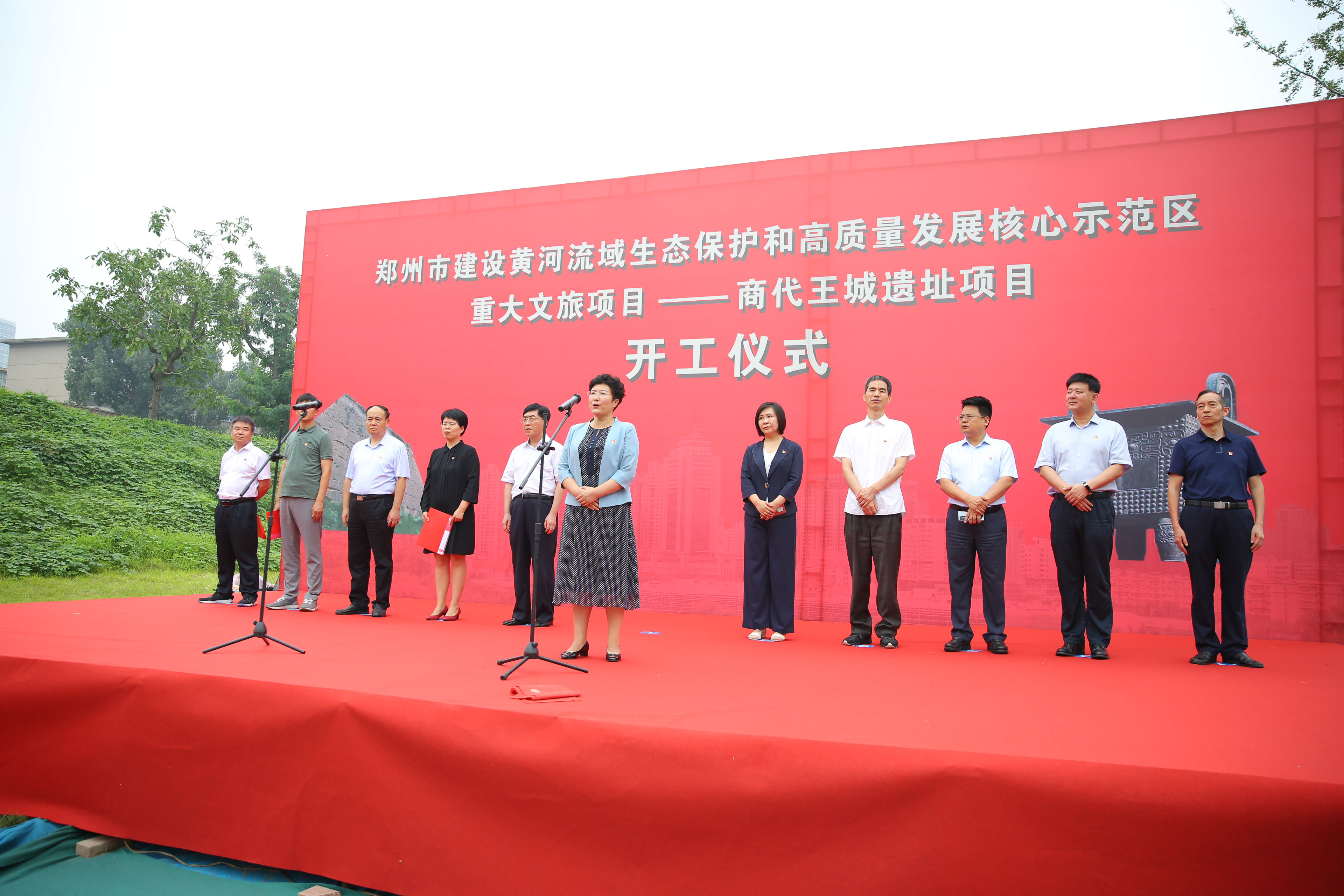 2020年7月24日上午,鄭州市建設(shè)黃河流域生態(tài)保護(hù)和高質(zhì)量發(fā)展核心示范區(qū)重大文旅項(xiàng)目集中開(kāi)工活動(dòng)——商代王城遺址項(xiàng)目開(kāi)工儀式在亳都古巷項(xiàng)目現(xiàn)場(chǎng)舉辦。管城回族區(qū)委副書(shū)記、區(qū)長(zhǎng)張艷敏等區(qū)委區(qū)政府領(lǐng)導(dǎo)出席,商都控股公司黨支部書(shū)記、董事長(zhǎng)牛曉亮應(yīng)邀參加本次活動(dòng)。