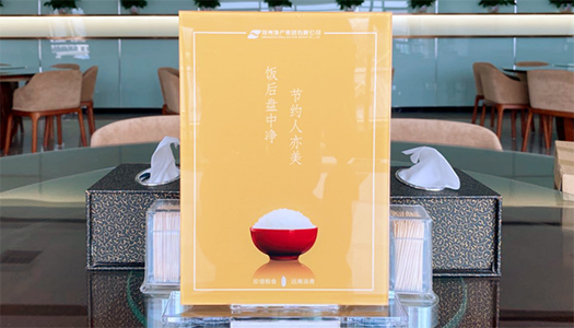 倡導并踐行餐桌文明,積極推行“分餐制、公筷制、雙筷制”;提供“半份、半價”“小份、適價”服務(wù)方式,倡導“光盤行動”;帶頭不使用一次性餐具,提供環(huán)保打包服務(wù)。