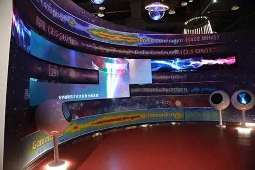 最夢幻的是“追光之旅”展廳。一進(jìn)這個展廳,仿佛能沉浸式體驗星際穿越的樂趣。這里打破單純講解理論知識和科學(xué)現(xiàn)象的傳統(tǒng)模式,用講故事的方式串聯(lián)起相關(guān)展項,讓整個展廳形成一套完整的故事體系,生動還原了科學(xué)探索的過程。追光之旅的旅程是回答“光是什么?”的過程,在這個過程中我們通過“認(rèn)識光的傳播”“駕馭光的路徑”“探索光的本質(zhì)”“運(yùn)用光的新知”四個分主題帶領(lǐng)觀眾了解光學(xué)的發(fā)展歷程。