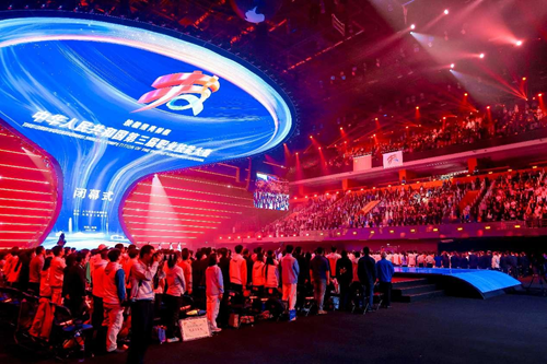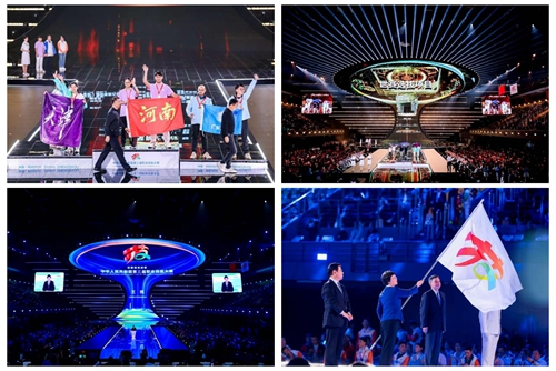 華燈璀璨,掌聲如潮。9月23日晚,當(dāng)348名獲獎選手高舉隊旗與獎?wù)拢?dāng)大賽會旗在璀璨的舞臺上完成交接傳遞,當(dāng)良渚文化和人形機(jī)器人在現(xiàn)場8000余名觀眾的歡呼聲中共舞……中華人民共和國第三屆職業(yè)技能大賽閉幕式在鄭州奧體中心體育館完美落幕!