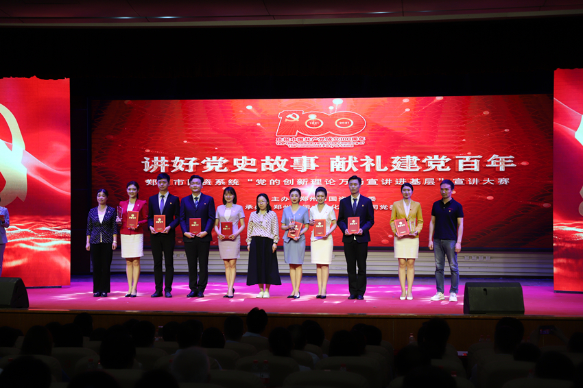 為慶祝中國共產(chǎn)黨成立100周年, 扎實(shí)開展黨史學(xué)習(xí)教育, 5月26日上午,鄭州市國資系統(tǒng)“講好黨史故事·獻(xiàn)禮建黨百年”——“黨的創(chuàng)新理論萬場宣講進(jìn)基層”宣講大賽在市總工會(huì)一樓職工大禮堂圓滿落下帷幕。來自市國資系統(tǒng)14家單位選送的15個(gè)宣講節(jié)目進(jìn)入大賽決賽,鄭州地產(chǎn)集團(tuán)選送的西流湖公司黨支部宣講節(jié)目《百年交響》榮獲三等獎(jiǎng)。