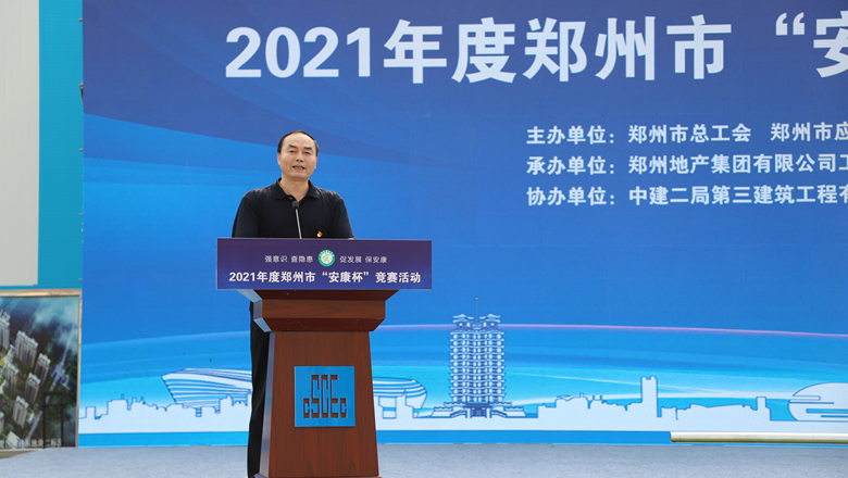 為深入貫徹落實習近平總書記有關加強安全生產工作的部署和要求,進一步強化各級各部門、各企業(yè)主體的安全責任意識,確保我市安全生產形勢持續(xù)好轉,職工安全健康不斷鞏固。6月11日上午,由鄭州市總工會、鄭州市應急管理局、鄭州市衛(wèi)生健康委員會及鄭州市消防救援支隊主辦,鄭州地產集團工會、鄭州西流湖控股有限公司工會承辦的鄭州市2021年“安康杯”競賽啟動儀式在中原新區(qū)廟王東安置區(qū)項目成功舉行。鄭州市相關組織部門、市總工會成員單位、地產集團、西流湖公司、各參建單位共200余人參加啟動儀式。鄭州市一級巡視員,市總工會黨組書記、主席趙新中、鄭州市衛(wèi)生健康委員會黨組成員、二級調研員楊德林、鄭州市應急管理局三級調研員安春茂、鄭州市消防救援支隊副支隊長、滅火救援指揮部部長李隆、鄭州市總工會副主席宋少丹、鄭州地產集團有限公司監(jiān)事會主席、工會主席李靜波、鄭州地產集團西流湖公司黨支部書記、董事長、總經理 吉獻亮,中建二局第三建筑工程有限公司西北分公司黨委副書記、執(zhí)行總經理趙海軍出席儀式。啟動儀式由市總工會勞動和經濟部部長宋慧主持。