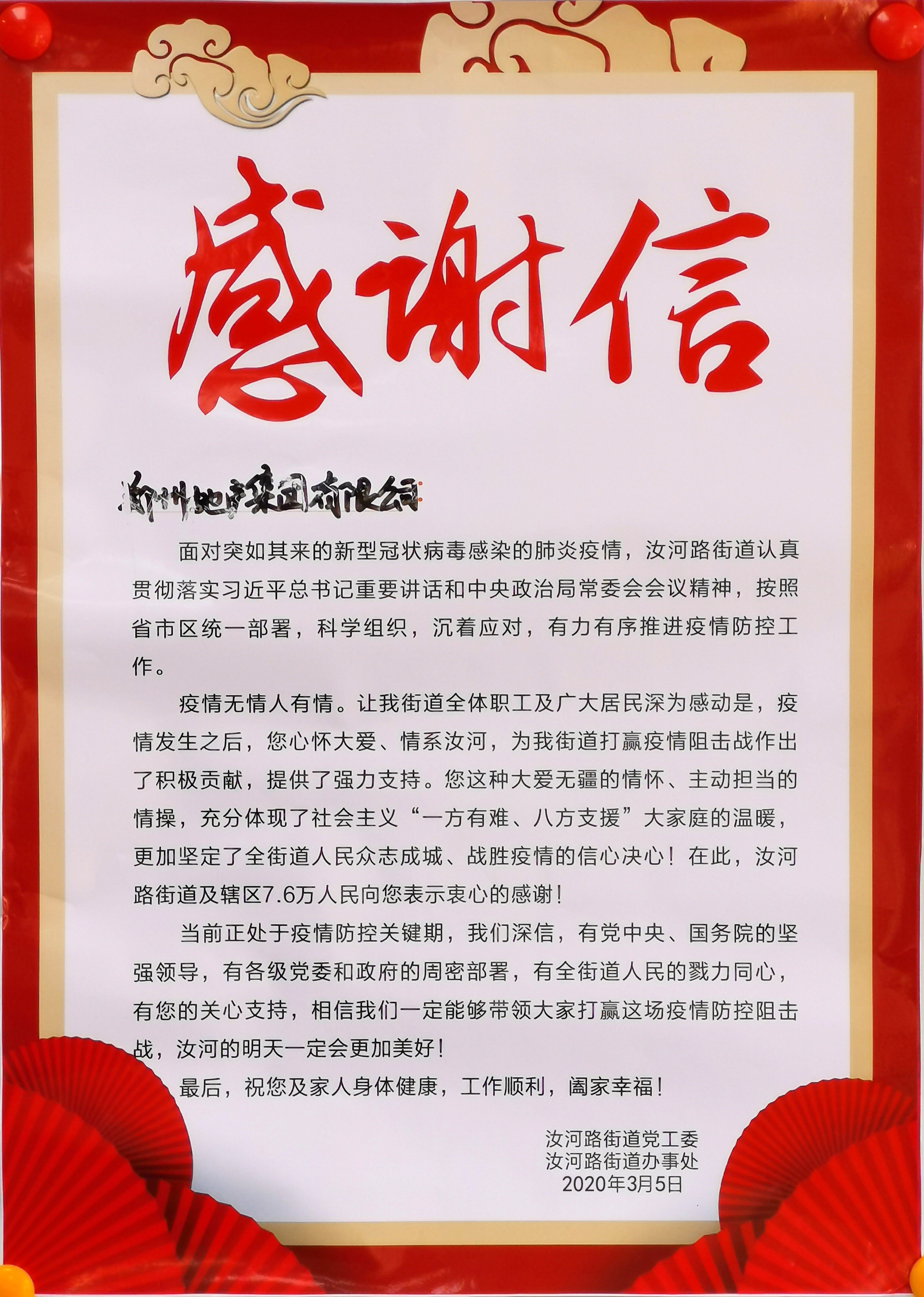 桐淮社區(qū)書記王輝代表社區(qū)工作人員和志愿者向集團(tuán)領(lǐng)導(dǎo)送上《感謝信》,并表示集團(tuán)的慰問讓一線工作人員心里充滿了溫暖,也進(jìn)一步堅(jiān)定了開展疫情防控的信心和決心。在地產(chǎn)集團(tuán)等社會各界的關(guān)心關(guān)注下,在無數(shù)雷鋒式志愿者的共同努力下,我們一定會打贏新冠肺炎疫情防控這場硬仗。