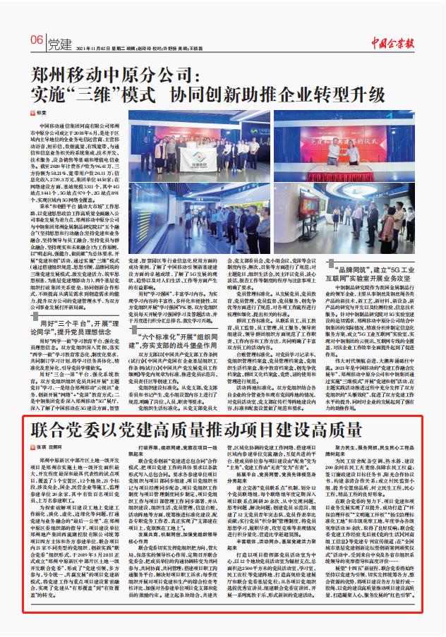 11月2日,由中國企業(yè)聯(lián)合會、中國企業(yè)家協(xié)會主管的中央級報紙《中國企業(yè)報》對西流湖公司黨建工作先進(jìn)經(jīng)驗進(jìn)行了宣傳報道。