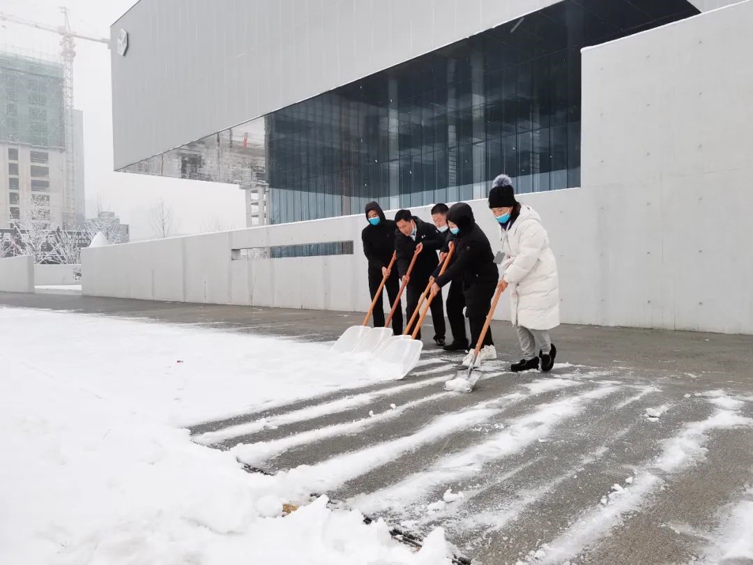 全力以赴,分秒必爭(zhēng)。4日下午突如其來(lái)的降雪,給第二天的檢測(cè)工作帶來(lái)了極大困難。面對(duì)艱巨的任務(wù),為切實(shí)做好全員核酸檢測(cè)準(zhǔn)備工作,保障參檢群眾生命財(cái)產(chǎn)安全。鄭地發(fā)展公司作為國(guó)企,危急關(guān)頭彰顯國(guó)企擔(dān)當(dāng),第一時(shí)間作出動(dòng)員號(hào)召,由黨員同志帶頭,迅速組建了一支30余人的志愿服務(wù)隊(duì),連夜開始了場(chǎng)地清理布置工作,調(diào)配防疫物資、準(zhǔn)備消毒液、架設(shè)引導(dǎo)牌、拉設(shè)警戒線、張貼掃碼紙、擺放檢測(cè)臺(tái),對(duì)商務(wù)服務(wù)中心進(jìn)行全面消殺,同時(shí)組織新加入的志愿者開展模擬演練,幫助大家快速熟悉服務(wù)工作,保證各個(gè)環(huán)節(jié)有條不紊。5日清晨,志愿者們?cè)缭鐏?lái)到商務(wù)服務(wù)中心現(xiàn)場(chǎng)清理積雪,僅僅半個(gè)小時(shí),園區(qū)便露出了干凈整潔的路面,為迎接檢測(cè)做好了充分準(zhǔn)備。