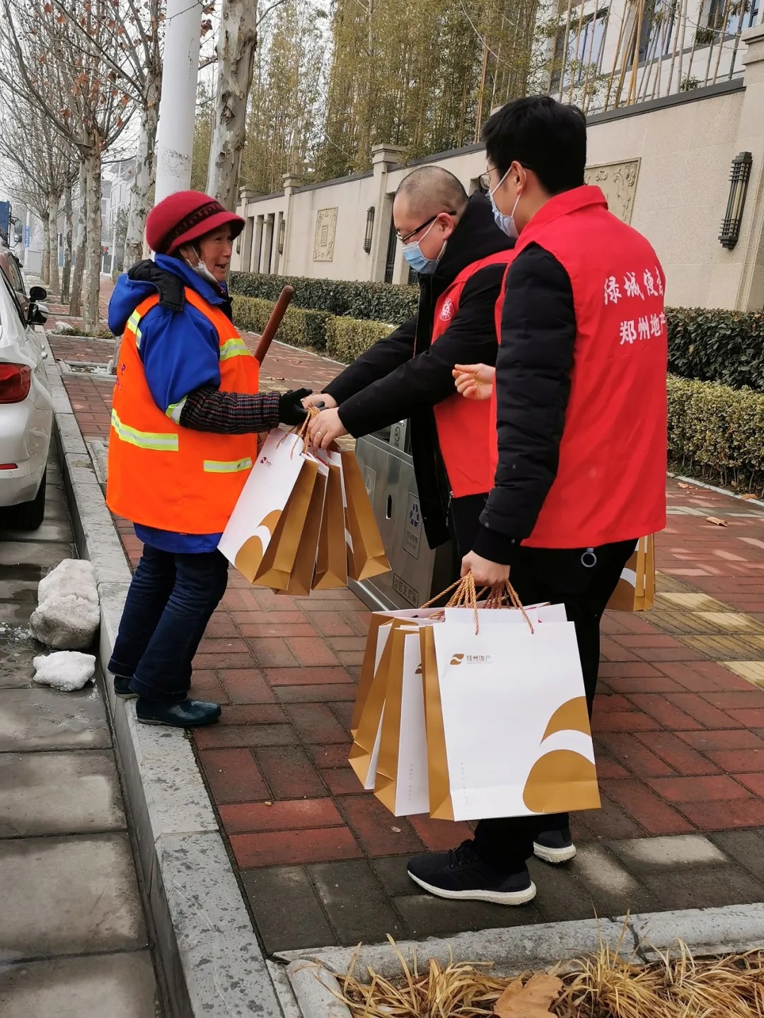 活動中黨員同志們先后為市政環(huán)衛(wèi)工人、亞新龍湖壹號院保潔員及六樓餐廳工作人員贈送了春聯(lián)及對新春美好的祝福,感謝他們在疫情防控期間為大家提供健康舒適辦公環(huán)境及良好的用餐環(huán)境,感謝他們堅守一線,為城市干凈優(yōu)美的市容市貌的艱辛付出,并提醒在服務大家服務城市的同時做好個人防護,注意防寒保暖。一線工作者們紛紛表示送春聯(lián)活動讓他們真真切切感受到社會和企業(yè)對他們的關懷和祝福,也為即將到來的春節(jié)增添了濃郁的節(jié)日氣氛。